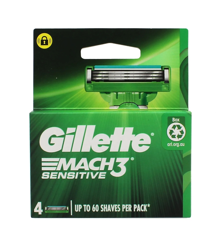Tříbřitá holicí hlavice Gillette Mach3 Sensitive vyvinuta speciálně pro citlivou pokožku. Břity DuraComfort™, mají pružinové uchycení, díky čemuž vyrovnávají různé tlaky na pokožku během holení. Zvlhčující pásek s hydratačním a zklidňujícím gelem zklidňuje pokožku a zajišťuje její komfortní pocit. S Gillette Mach3 Sensitive dosáhnete dokonale hladkého oholení bez podráždění.