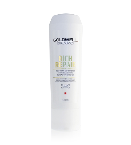 Kondicionér proti lámavosti vlasů pro suché a namáhané vlasy Goldwell Dualsenses Rich Repair efektivně redukuje lámavost vlasů již od prvního použití. Vlasům navrací jejich přirozenou elasticitu a pružnost. Zlepšuje česatelnost. Regenerační IntraLipidComplex s obsahem hedvábných proteinů z pašmíny a Instant Microfluid Technology. Aplikujte do šamponem umytých vlasů, nechejte chvíli působit a důkladně opláchněte.