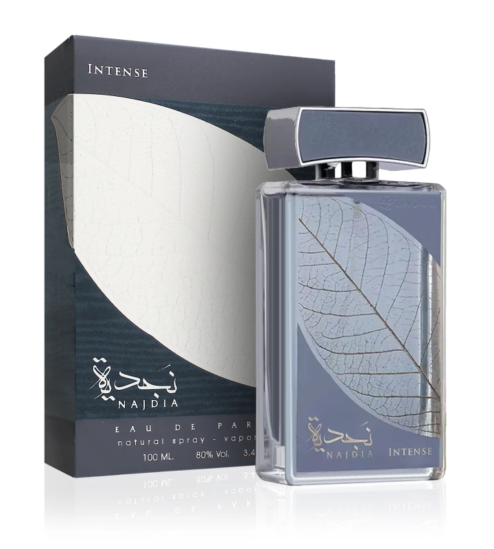Parfémovaná voda Lattafa Najdia Intense je sofistikovaná a podmanivá vůně pro muže, která bez námahy vyvažuje svěžest, eleganci a smyslnost. Vůně se otevírá svěží a povzbuzující směsí máty, zázvoru, ananasu a jablka, která okamžitě upoutá pozornost. Jak se vůně rozvíjí, srdce vůně odhaluje harmonické spojení mořských tónů, uklidňující levandule a aromatického pelargónie. Tato kombinace přináší pocit klidu a elegance. Hřejivý a smyslný základ vůně s bohatými tóny santalového dřeva, krémových tonka bobů, zemitého pačuli a pižma zajišťuje, že vůně krásně vydrží a zanechá trvalý dojem, ať jste kdekoli.