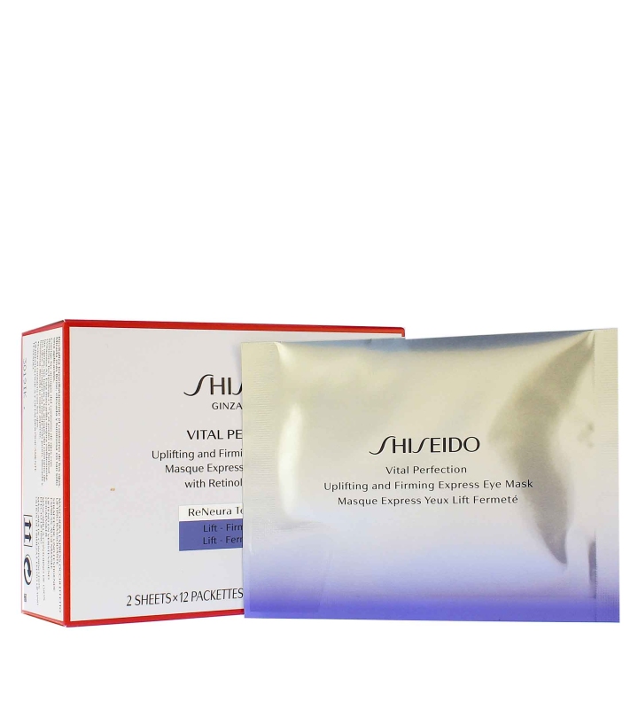 Retinolová maska pod oči Shiseido Vital Perfection Uplifting & Firming Express Eye Mask viditelně pozvedá a zpevňuje oční kontury za pouhý 1 týden. Okamžitě uvidíte zářivější oční okolí a zároveň pomůžete zaměřit se na tmavé kruhy a váčky pod očima a známky únavy. Tvar masky pokrývá širokou oblast kolem očí a její materiál pomáhá udržet a uvolnit více esence do pokožky.