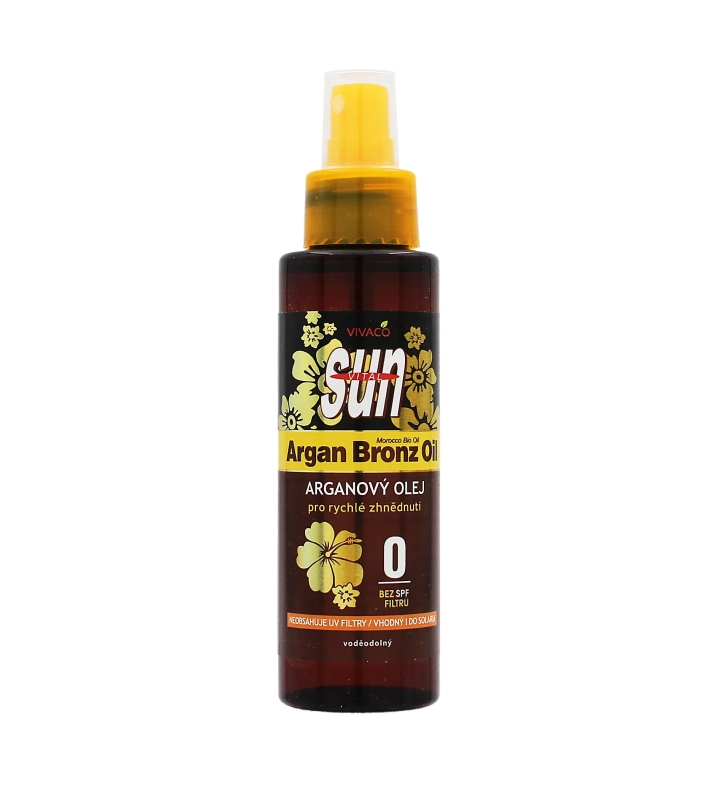 Získejte rychlé a přirozeně bronzové opálení s opalovacím olejem Vivaco Sun Vital Argan Oil. Složení s bio arganovým olejem, beta karotenem a vitaminem E pomáhá podpořit bronzový tón pokožky a přispívá k jejímu zdravému vzhledu. Přípravek neobsahuje UV filtry (SPF 0), určeno pro podporu opálení. Vhodné i do solária.